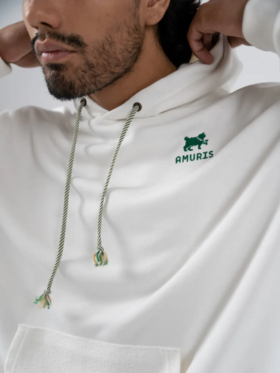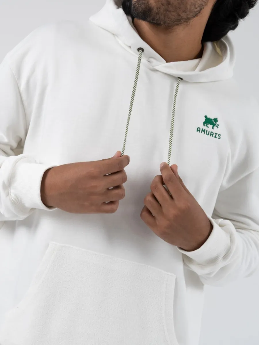 Худи с капюшоном, большим карманом впереди из комбинированной мягкой ткани, эффектный логотип в качестве вышивки фирменного значка с надписью AMURIS ярко-зеленого цвета, приятный на ощупь.